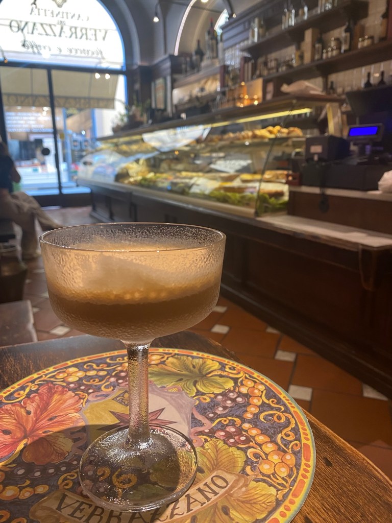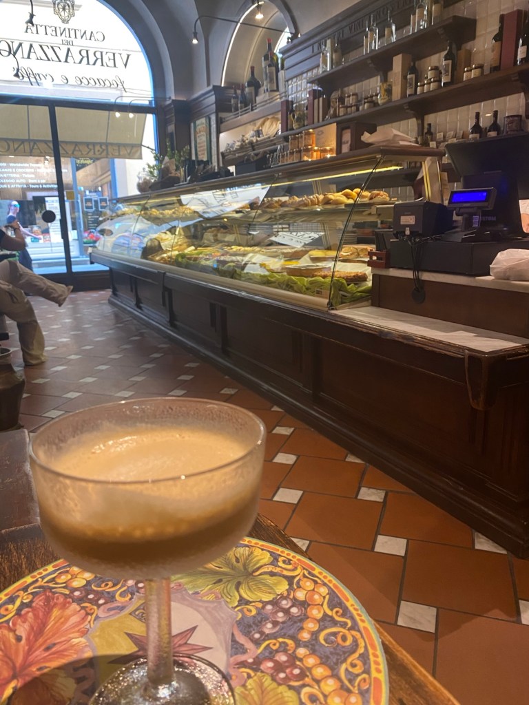 To survive (with pleasure) I seek out a caffe shakerato alle Cantinetta dei Verrazano. It’s an iced espresso with a touch of milk.
