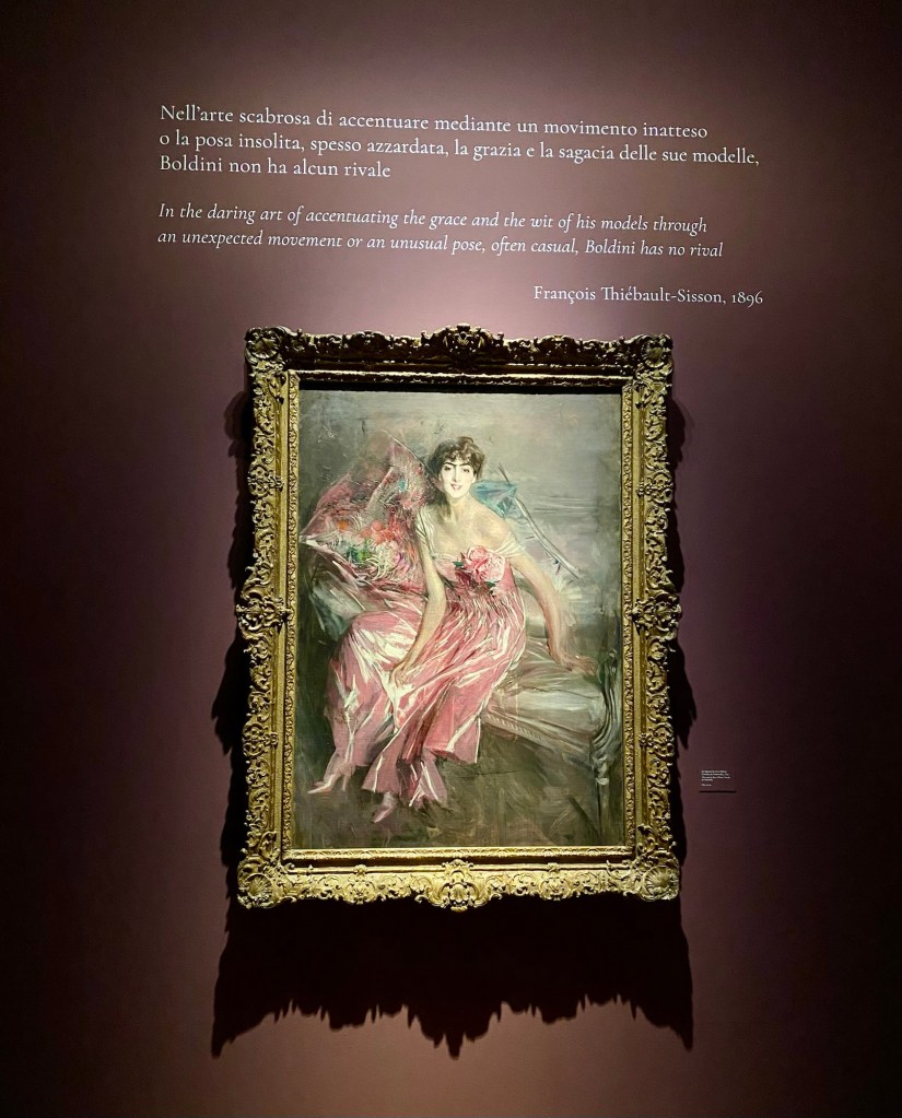 Boldini was born in Ferrara in 1842 and studied art in Florence where he was influenced by the Macchiaioli, a group of Italian painters who were precursors to Impressionism. Boldini is best known for his elegant and dynamic portraits, especially of high society figures, mostly women, which earned his great fame during the Belle Epoque period in Paris where he spent most of his career.
