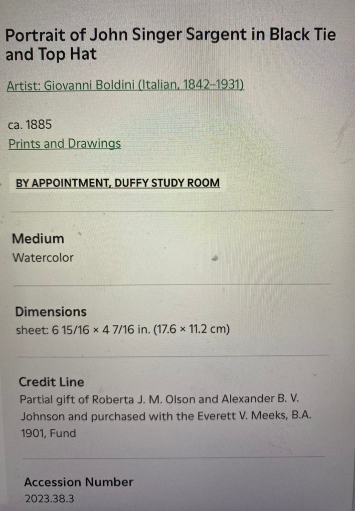 Yale University owns a small study of Sargent by Boldini, which I reproduce from a screenshot here.