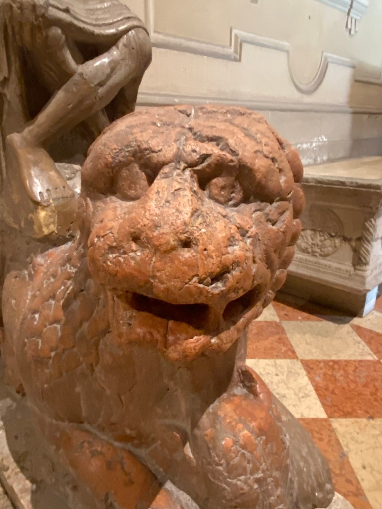 Typically, when I visited Ferrara recently, I found parts of the exterior of this august building under scaffolding. If you’ve spent any time at all in Italy, trying to see specific sights and not just what your tour guide shows you, you will know that scaffolding appears when you least expect or want it. It’s the story of research in Italy. I am often disappointed in this way, but at least I can console myself with the realization that I can return and try again. As indeed I will be doing with Ferrara. I am so grateful for that luxury.