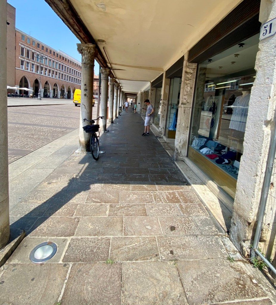 Below are the shots I took of the shopping arcade attached to the cathedral in Ferrara.