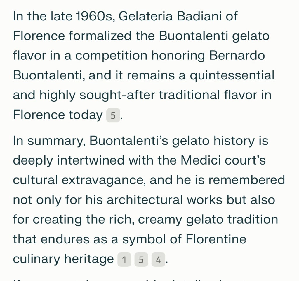 But typically I go here for their Buontalenti flavor, which was developed by the 16th century architect of the same name, according to tradition. And tradition is everything!