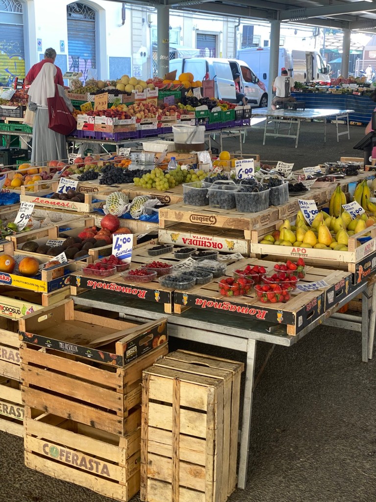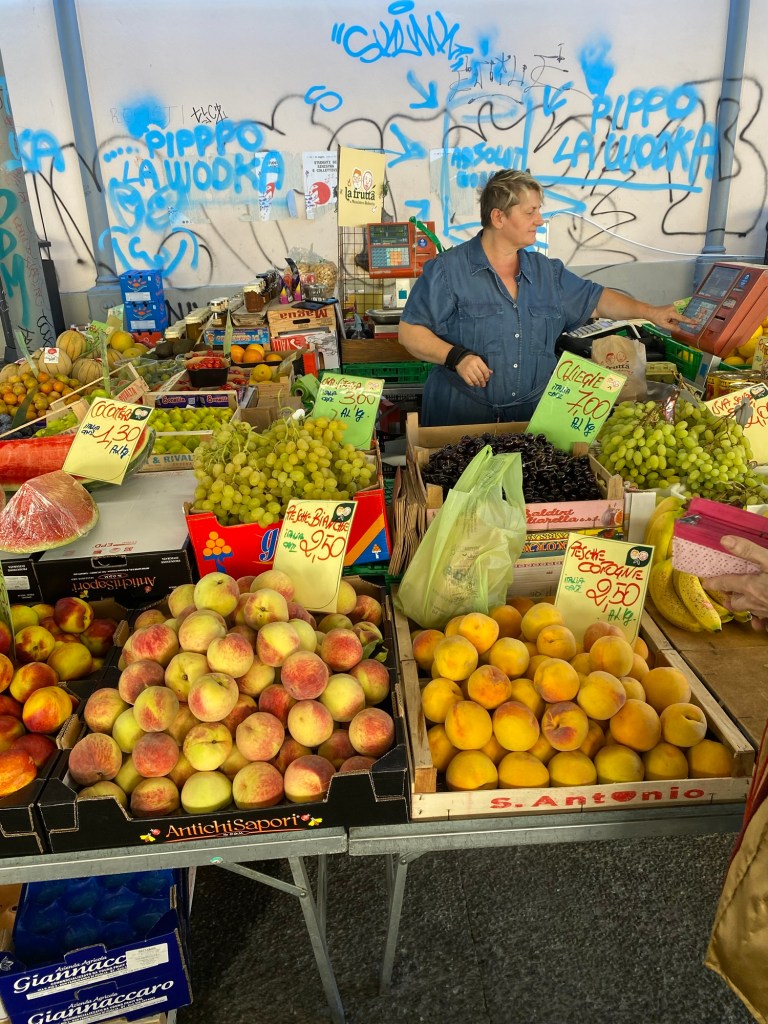 The only time I can enjoy being outside is first thing in the mornings. Even late in the evening is too hot to be pleasant for a walk. Today I wound up at the Sant’Ambrogio market, which is all but shut town for Ferragosto , the annual vacation month of August.