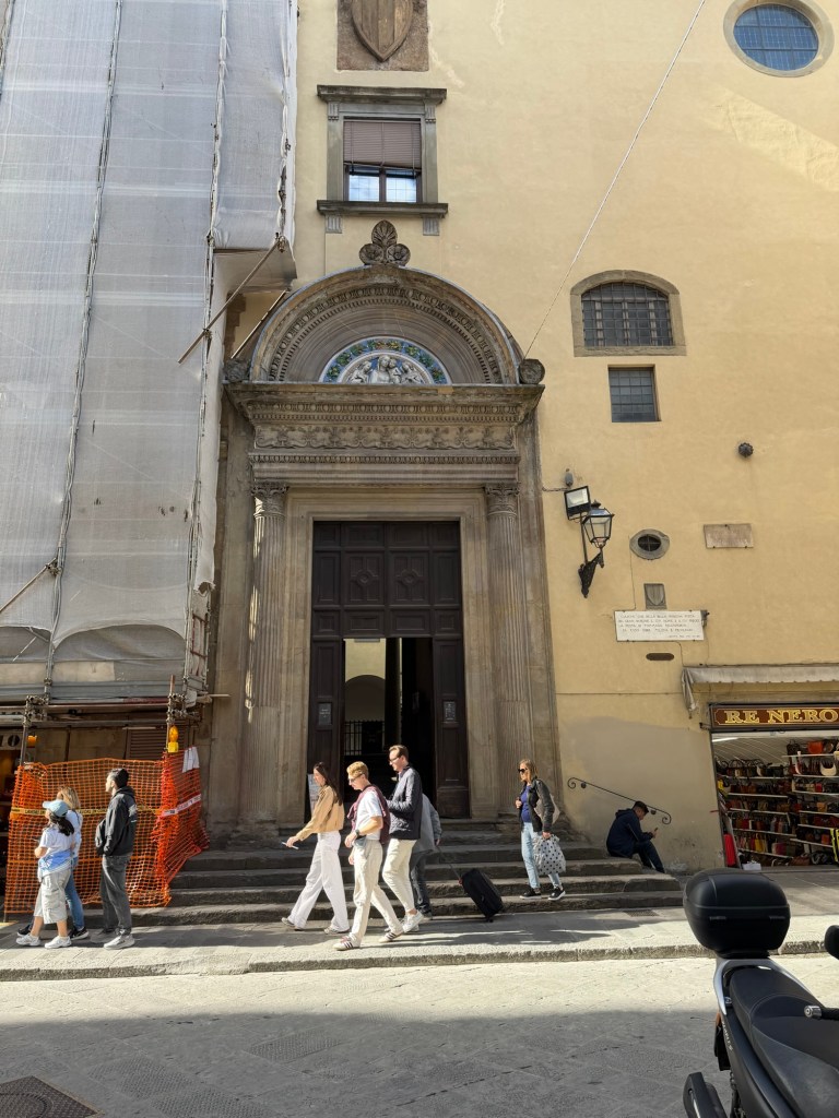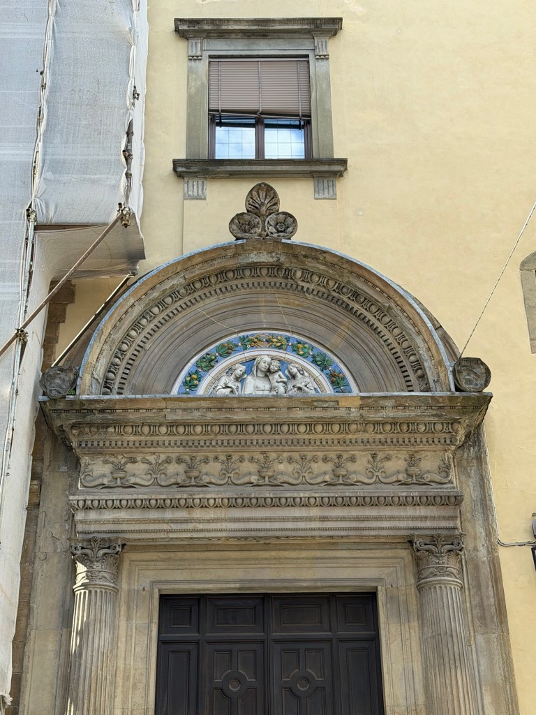 The monumental entrance to the Badia, with a fine Della Robbia polychromed ceramic lunette.
