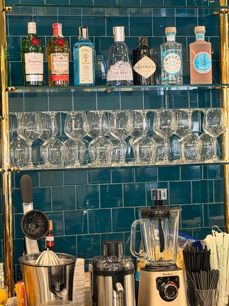 Look at how prettily these stemmed glasses are aligned.