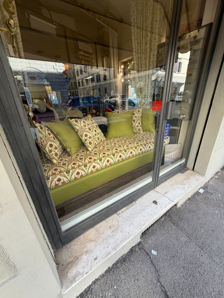 Gliding down a street in the center, I pass another of the uncountable tabernacles in Firenze. It’s unfortunate that it’s almost impossible to see some of them behind the glass.