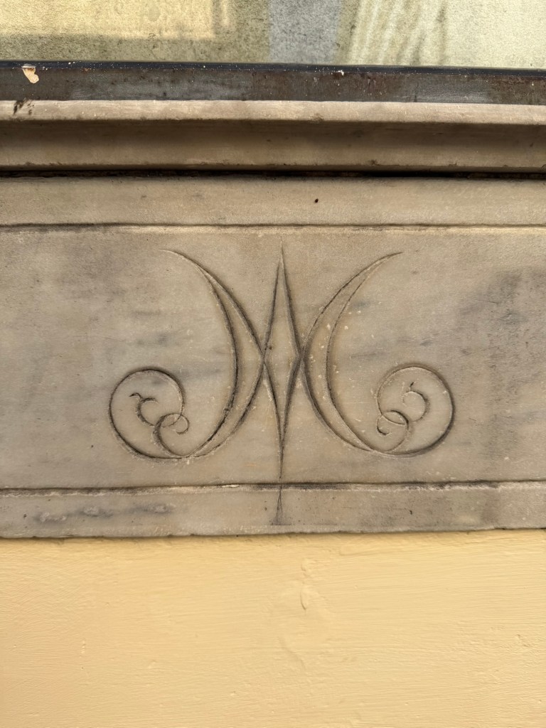 Stunning in its simplicity is the elegant design chiseled into the marble that frames the niche.