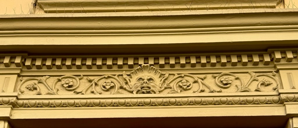 Further down the street quietly sits this ornate carving above an ordinary Florentine doorway.