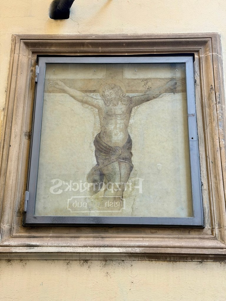 Not far away is a tabernacle, memorializing another human atrocity, the crucifixion of Christ. The attached label identifies the century in which this work was painted as the 17th. Again. Wow.