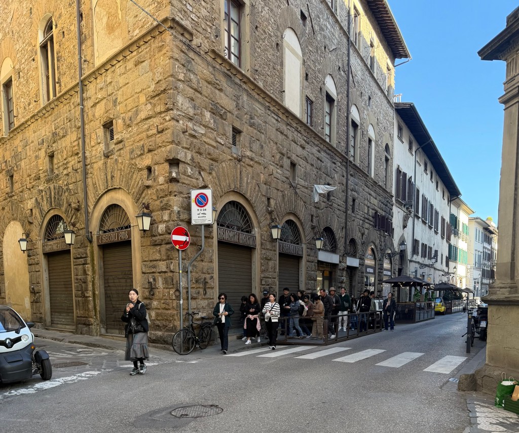 Nowadays in Florence there are groups of tourists throughout the calendar year. It used to be only certain months, but since Covid, it never seems to stop. This group, following their guide like ducklings after their mother, serves as an excellent example of the type.