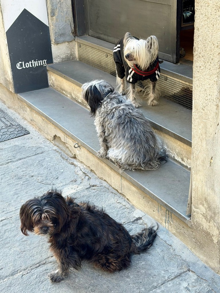 A Goth clothing store was being guarded by 3 ferocious dogs, also quite goth despite their diminuitve size. I wonder, did the owners choose these dogs for their goth coloring, or was it a coincidence? Comment below and tell me what you think!