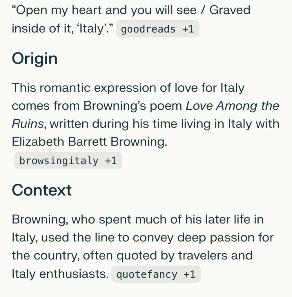 As he wrote: “Open my heart and you will see, Graved inside of it, ‘Italy’.”