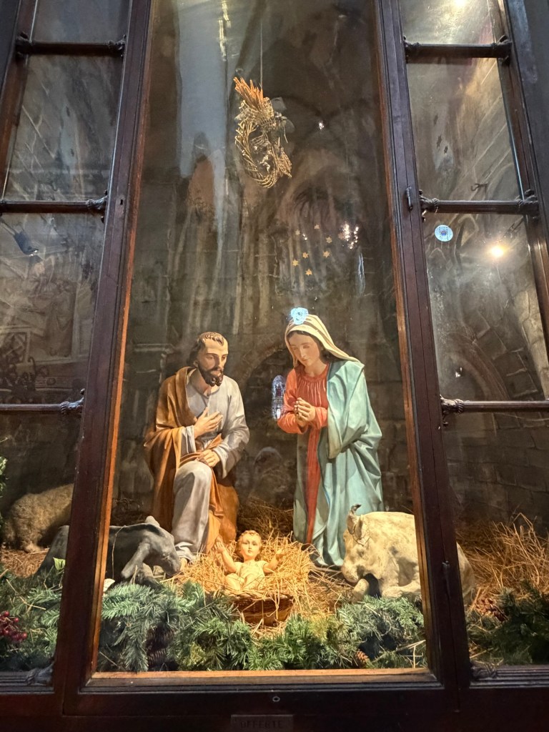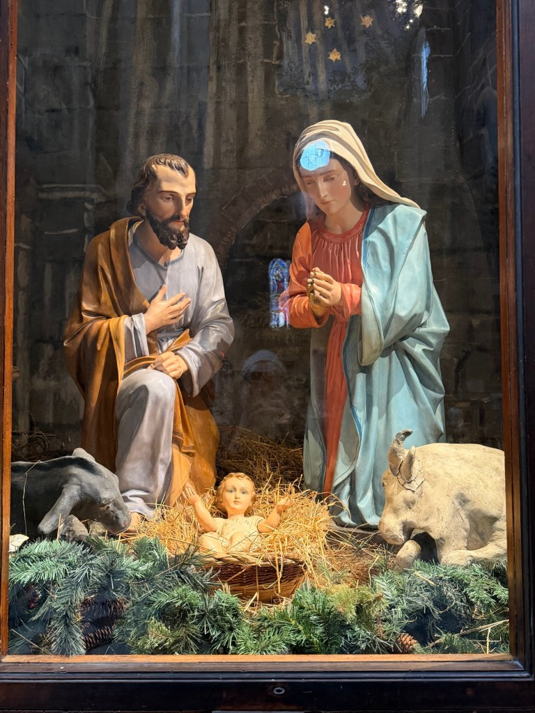 After exiting the area near the Bardi Chapel, one encounters this permanent creche scene in the basilica.