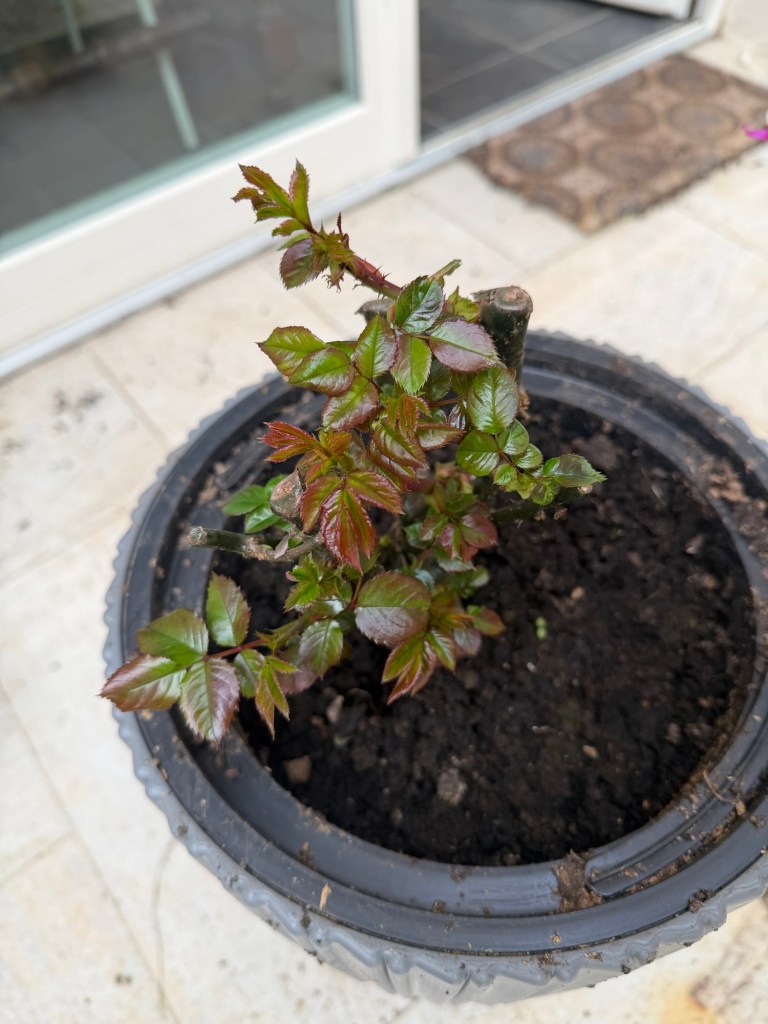 I found myself buying a bare root rose bush and planting in one of the many empty pots I purchased over the last year. I hope it is a success!