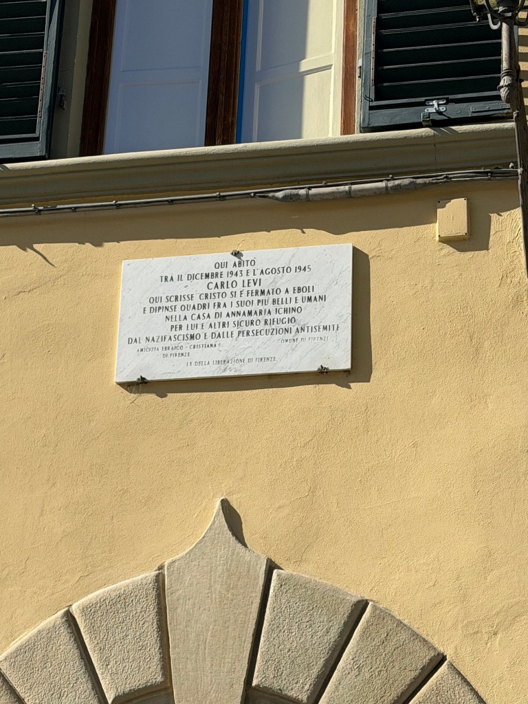 Levi is best known for his book Cristo si è fermato a Eboli (Christ Stopped at Eboli) which he wrote while living in exile in Florence, in this house. The book was published in 1945, a memoir of his time spent in exile in Lucania, Italy, after being arrested in connection with his political activism.
