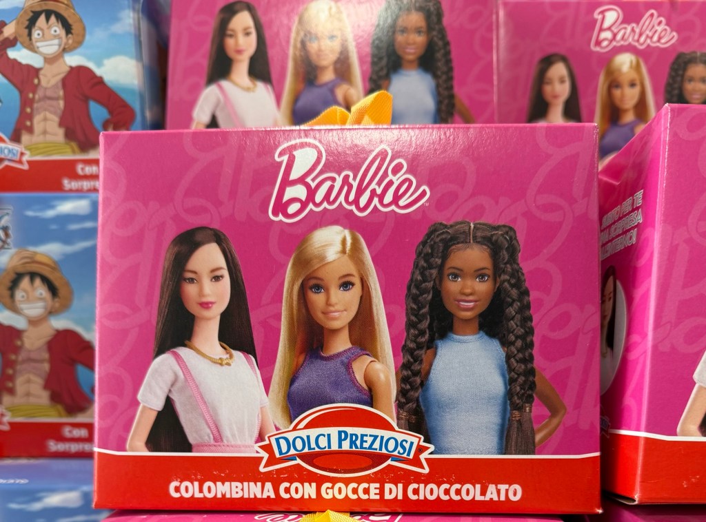 I was surprised to see comlombina (small dove breads), iced with chocolate, and sold with Barbie doll advertising. Weird.