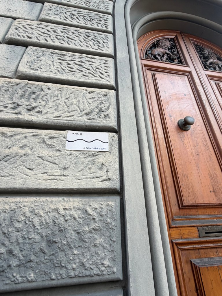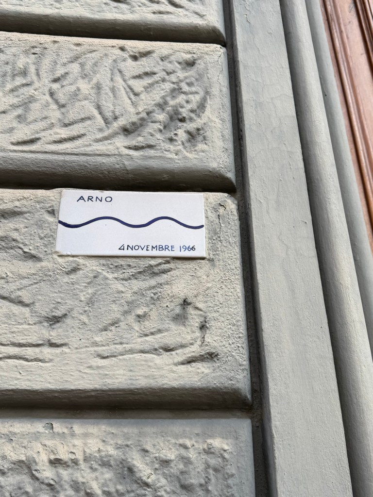 All through the eastern sections of Florence one finds posted signage related to floods that have occurred over the centuries in the city. I live near the Arno River and am in a flood zone should one of these happen again. The last really significant flood occurred on November 4, 1966 which is legendary here. It made the international news at the time.