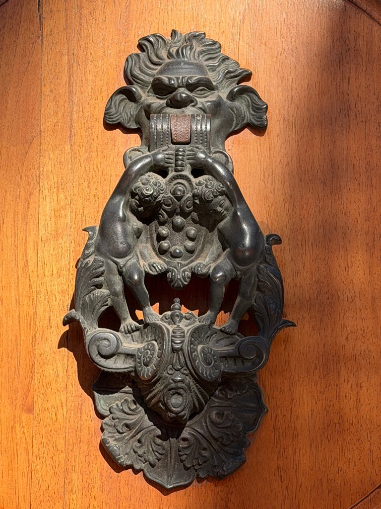 I get a kick out of all the door adornments in Italy and other European countries. Sometimes these are used as handles to open the door or as doorknockers.