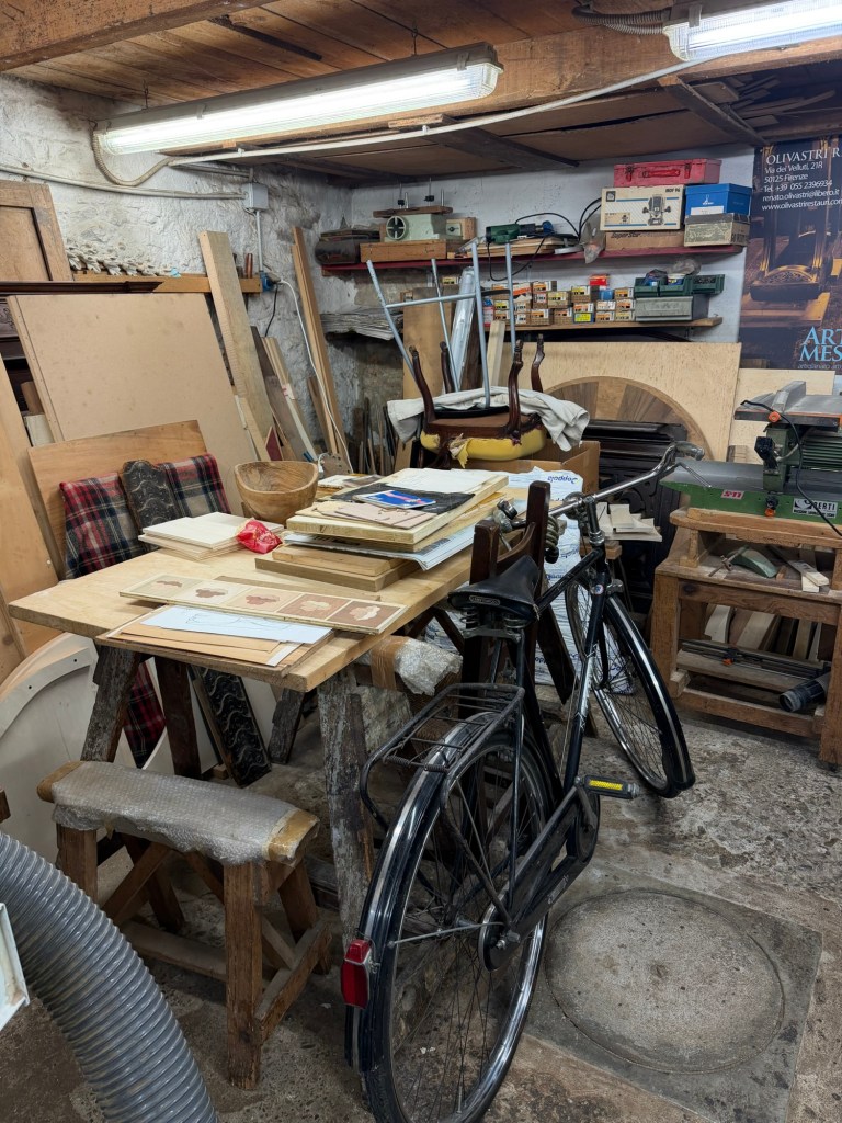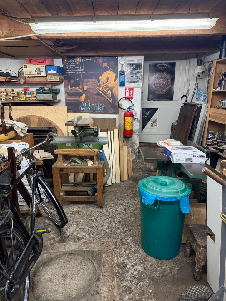 I recently had the good fortune to see an intarsia artist at work in his workshop in the Oltrarno section of Florence. I am happy I got some good videos and photos of him and his work. Please enjoy!