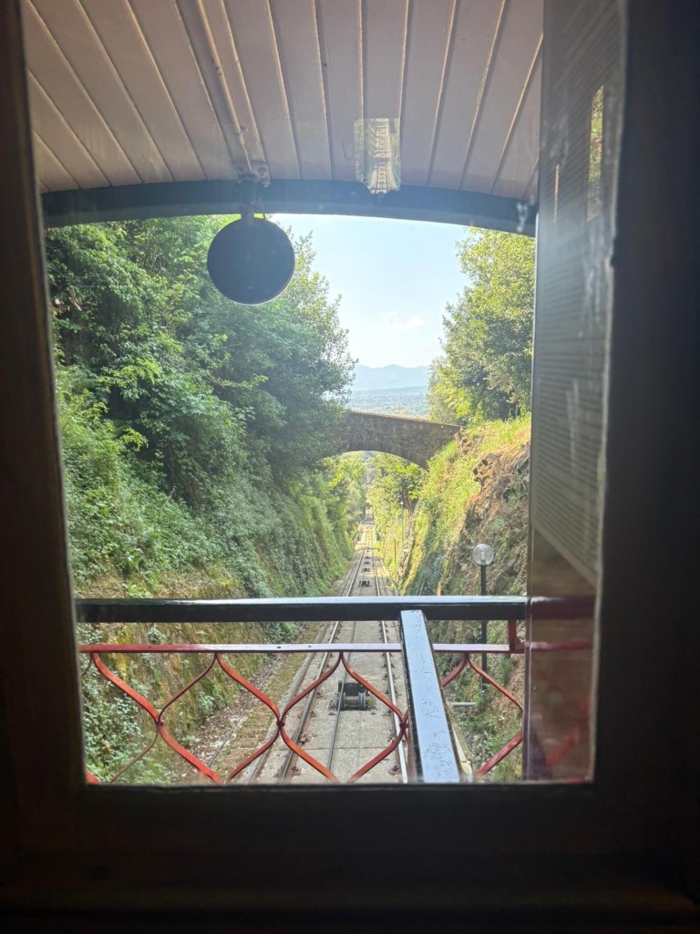This unique and characteristic transportation method hasn’t lost its charm since its inauguration on June 4, 1898, witnessed by Giuseppe Verdi himself. Riding up on either one of the red cars, you experience the wooden benches and/or the space to stand on the car’s exterior balcony. Millions of people have enjoyed the views from these charming cars.