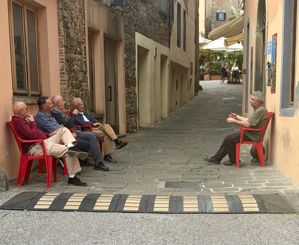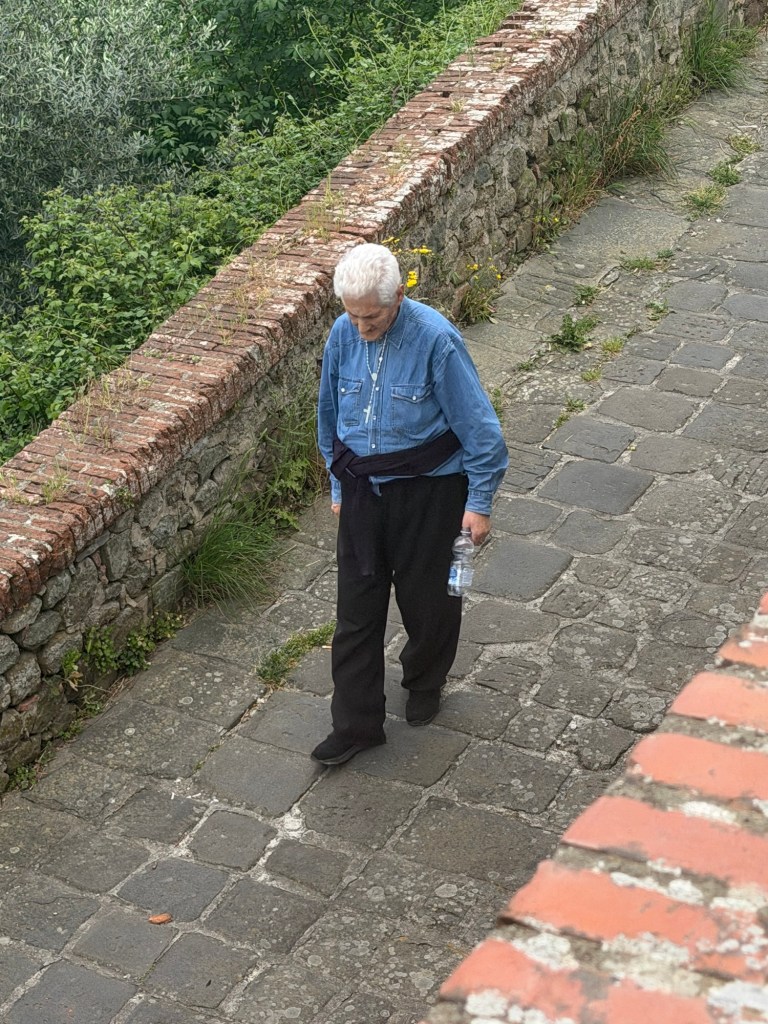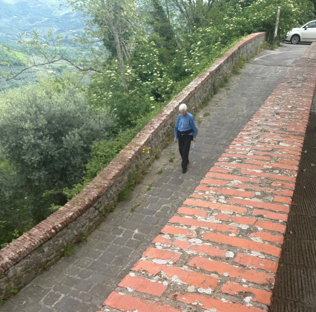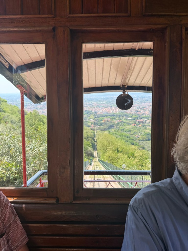 A frequent site is a group of older gentlemen having a chat. I asked Nadia if one ever sees this in Denmark and she said, no, it’s never warm enough to sit outside. The day we were in Montecatini Alto was April 18 and it was warm and sunny, about 75 degrees F. Nadia said a day like this in Denmark would be at the height of summer and everyone would go to the beach.