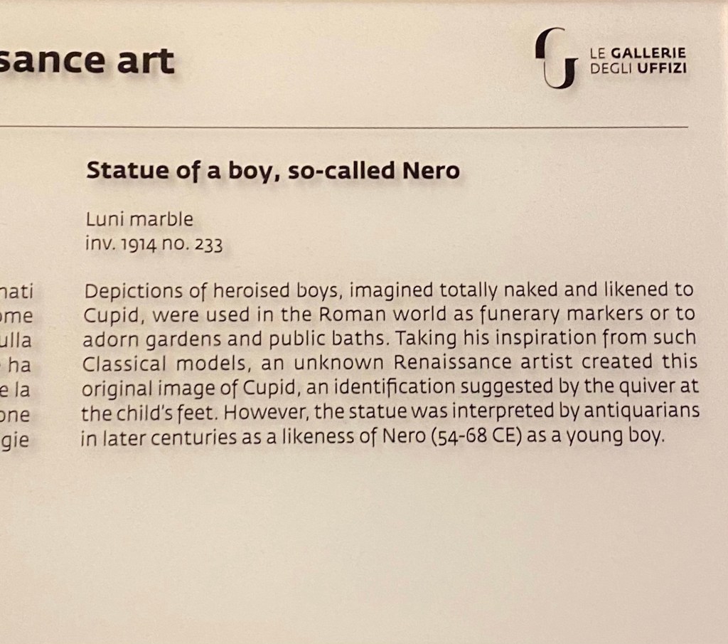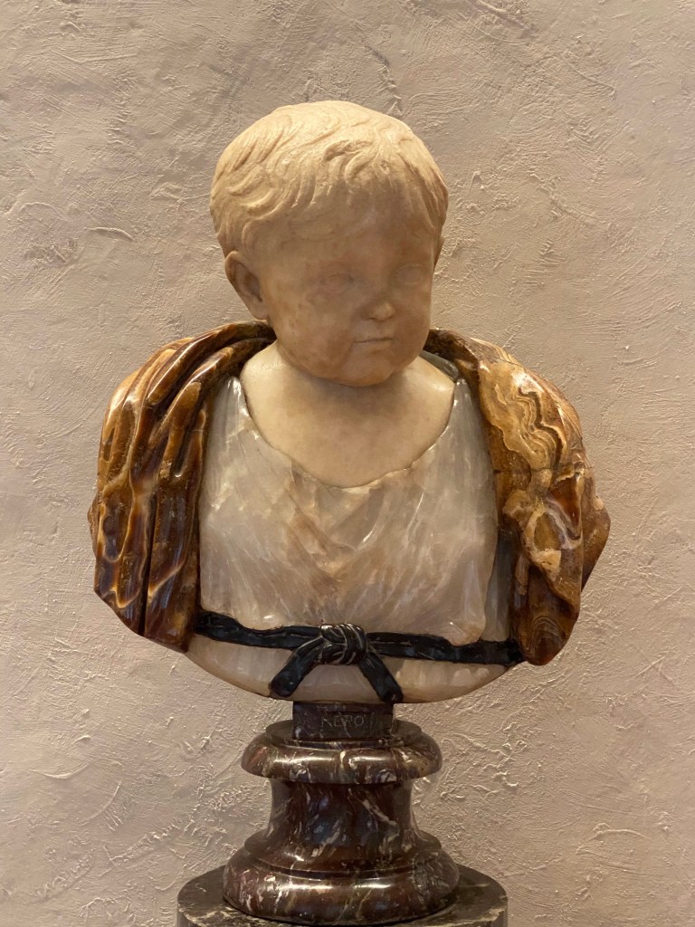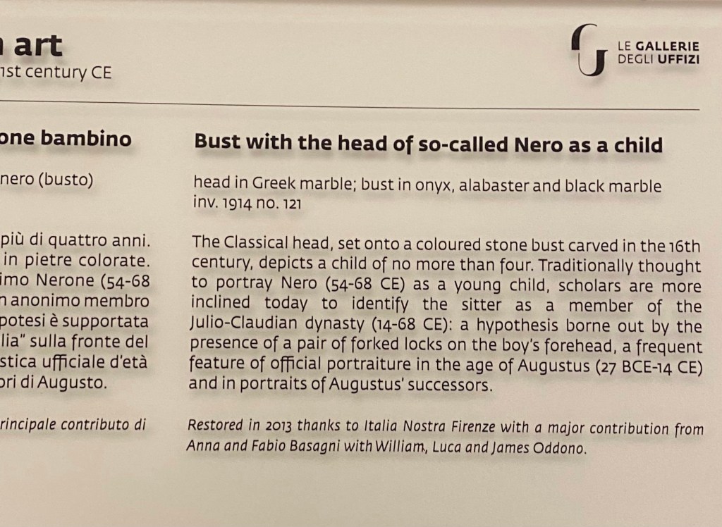 You don’t often see portraits of famous Romans as children, but the Uffizi has this interesting bust, believed to be of Nero, detailed above.