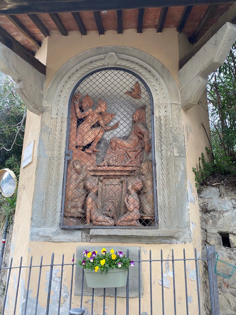 …are these ubiquitous tabernacles celebrating Christian scenes. They can be located on side streets in towns and cities, as the one above is, or at intersections in the country, as the one below is. It is especially charming when some anonymous person goes to trouble of keeping the flowers refreshed.