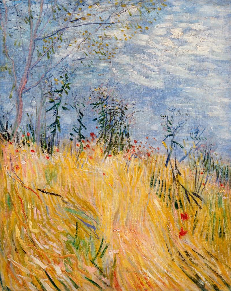 Edge of a Wheat Field with Poppies, painted in the summer of 1887, gives a sense of the many influences van Gogh was exposed to during his first year in the “hotbed of ideas” (as he called Paris in a letter to his sister).