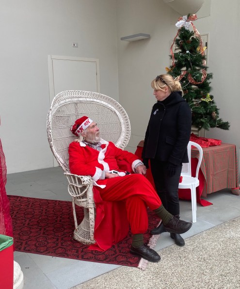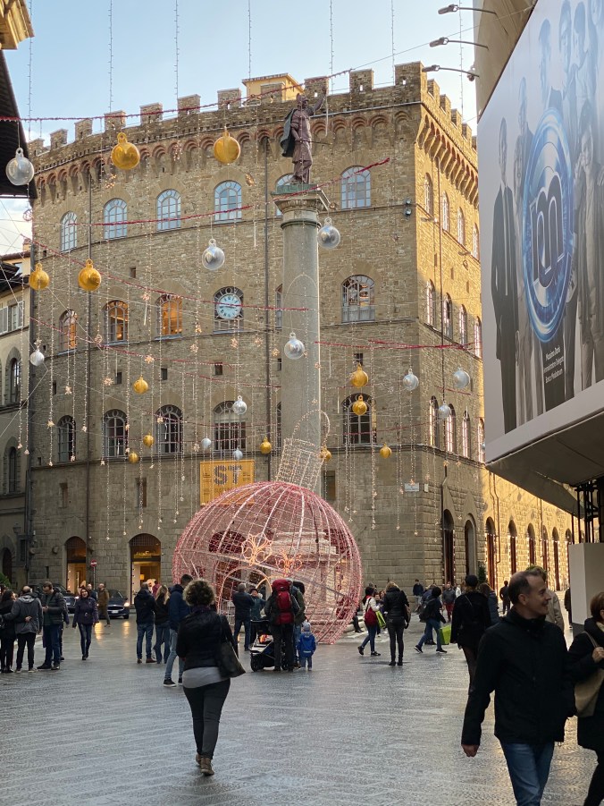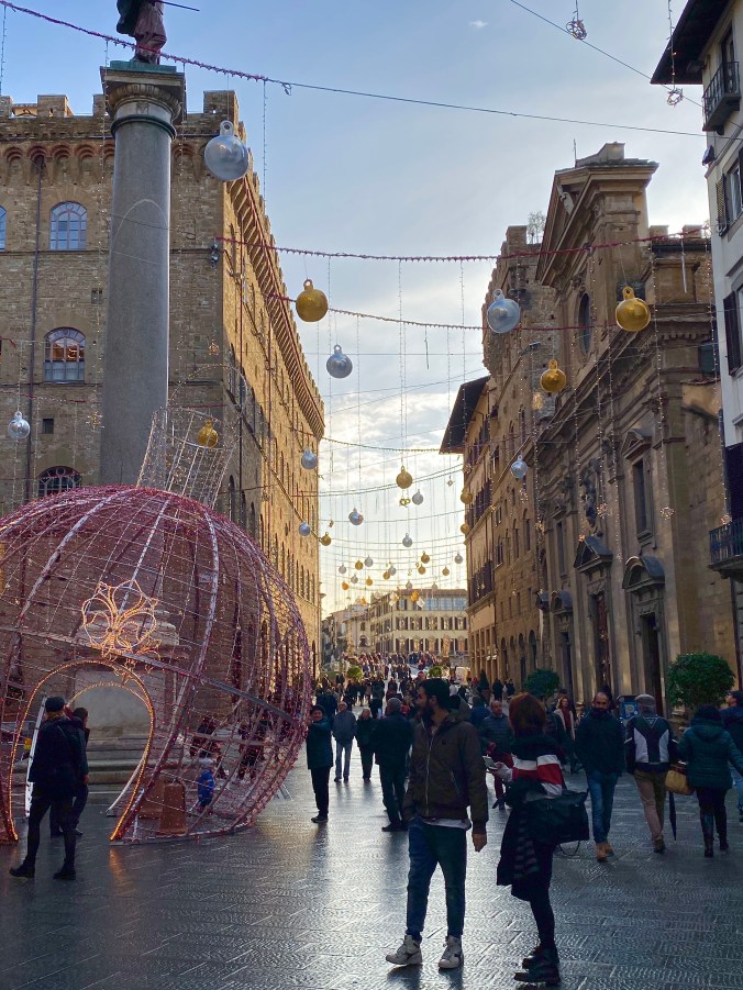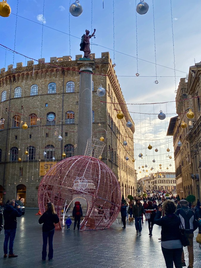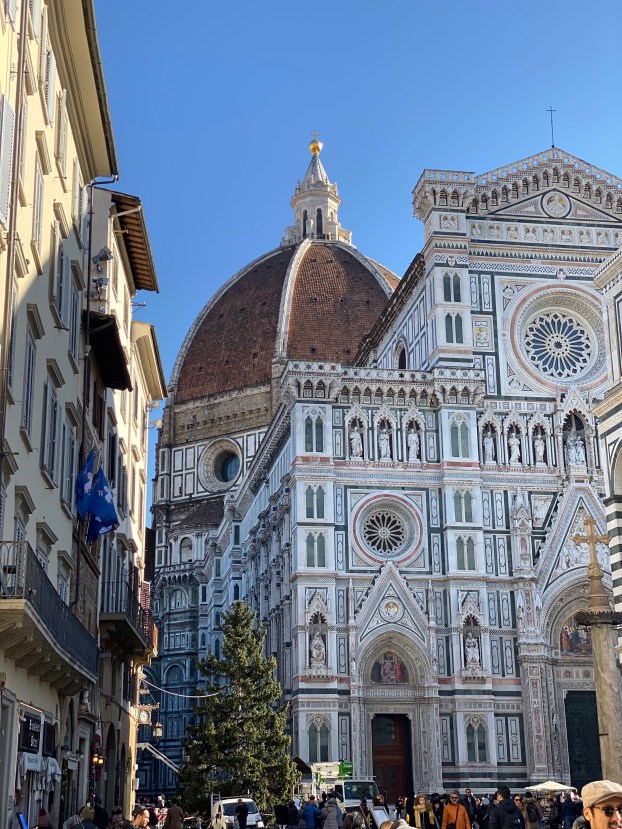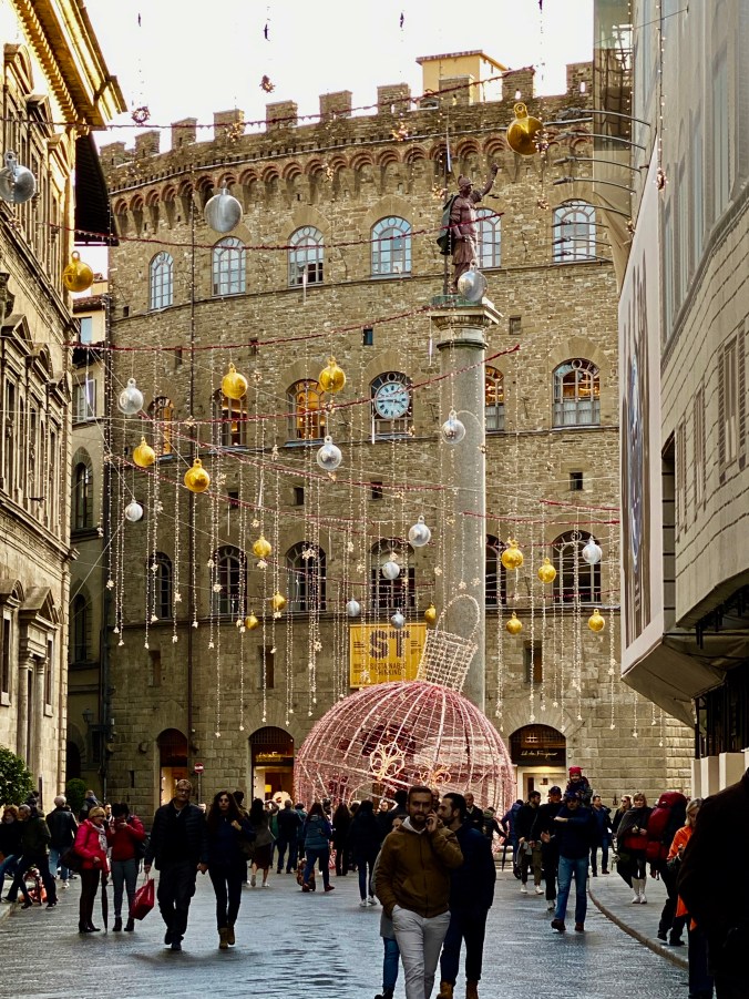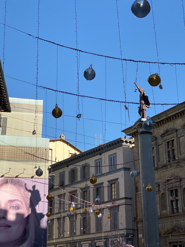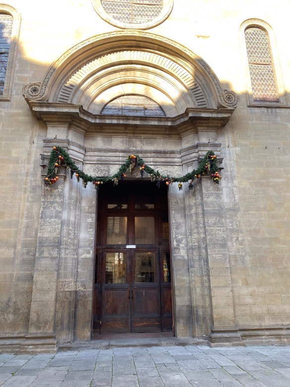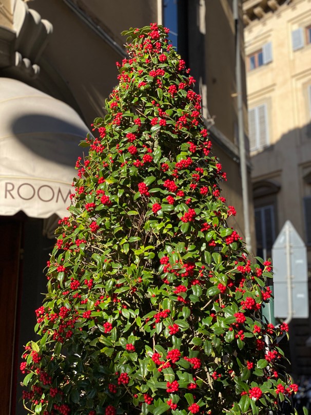 I visit a lot of churches (looking for art), and while most have a creche scene, very few are decorated like this one in Milan. It is Santa Maria delle Grazie, the church attached to the convent rectory with that famous scene of a last supper….