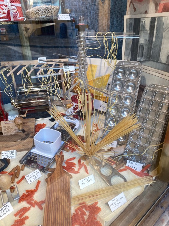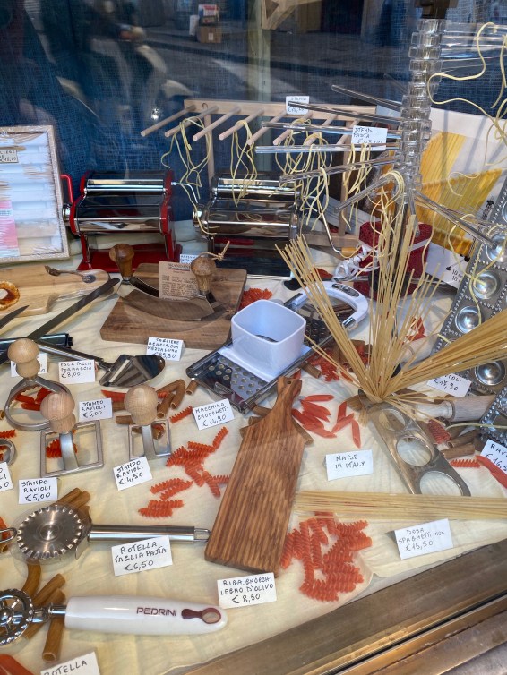 The famous pastry shop, Marchesi, founded in 1824, has wonderful windows: