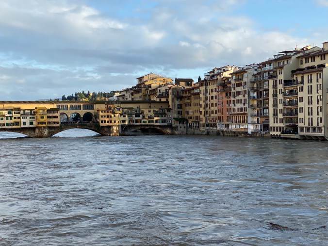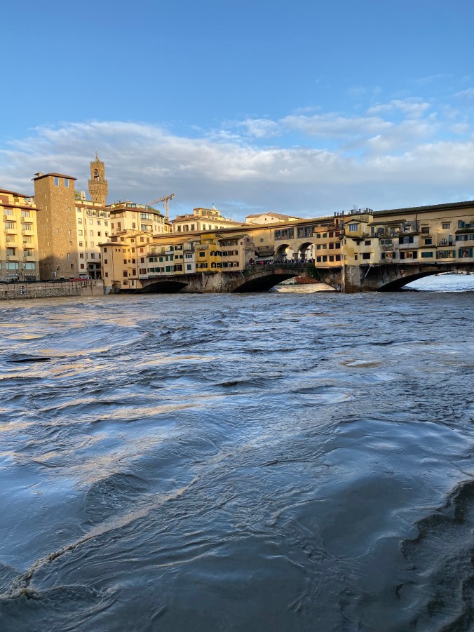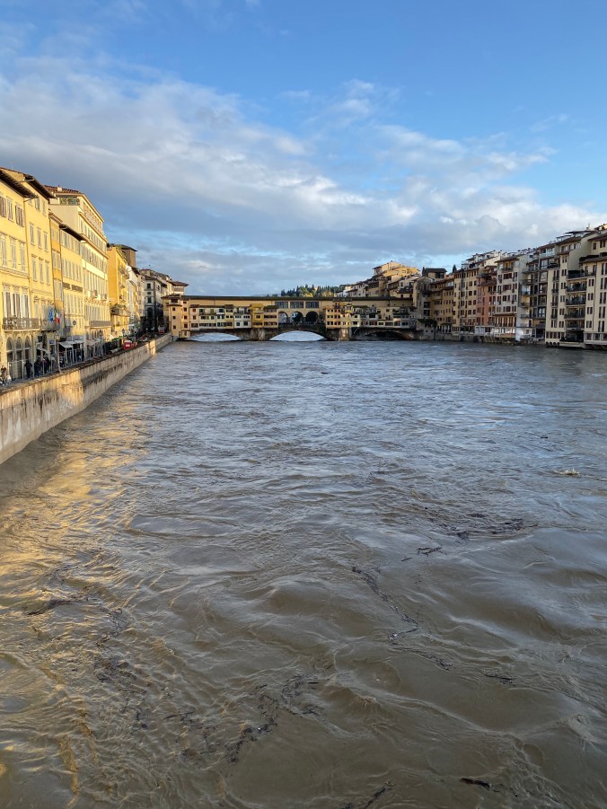 And then there is the Arno! It is very full and moving swiftly. Standing on the Santa Trinita Bridge today, it felt eerie: it makes you think of the 1966 flood.