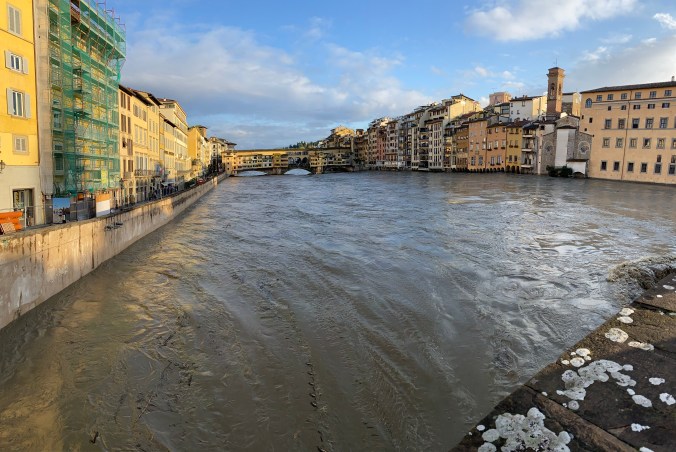 Italy has been getting drenched. Venice is underwater. Florence is soaked and the city’s 2 rivers show the extent. These pictures were all taken this afternoon.