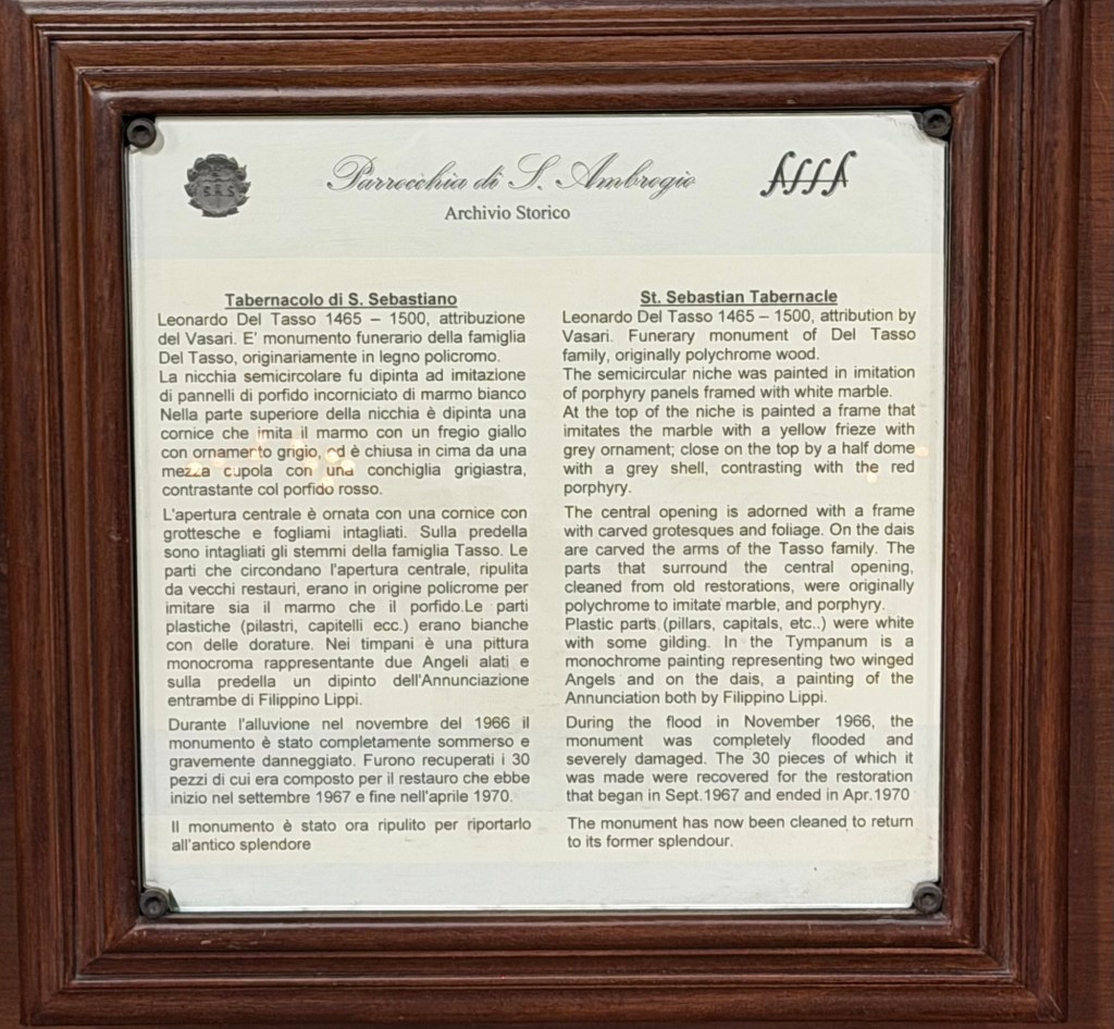 As I have been sharing with you in parts 1 and 2, this small Benedictine church remains a gem, hidden plain site in Florence, filled with artistic treasures still in situ.