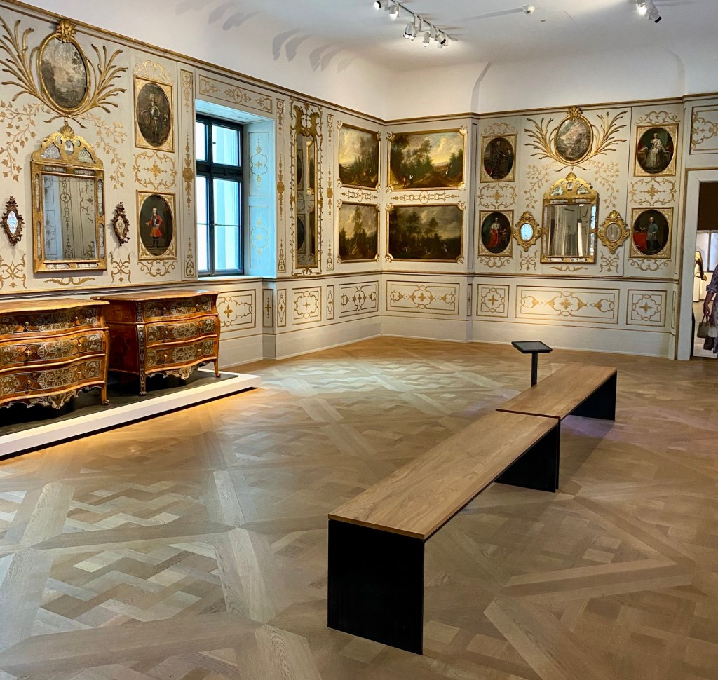 Many of the museum’s treasures are displayed in antique rooms moved to the museum. For example, the armor is in one of several rooms featuring Gothic ribbed vaulting form medieval buildings, magnificent Renaissance furnishings are displayed in rooms roofed with decorative wood-beamed and mullioned ceilings form the 14th and 15th centuries, and the Baroque objects in rooms with 16th century wood paneling and decorative ceilings.