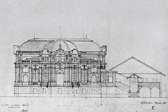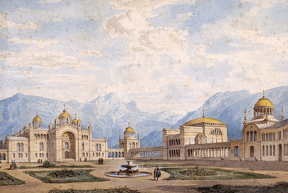 In 1868 he was already making his first plans for Linderhof. However, neither the palace modelled on Versailles that was to be sited on the floor of the valley nor the large Byzantine palace (see next picture) envisaged by Ludwig II were ever built. Instead, the new building developed around the forester’s house belonging to the king’s father Maximilian II, which was located in the open space in front of the present palace and was used by the king when crown prince on hunting expeditions with his father. Linderhof Palace, the eventual result of a long period of building and rebuilding, is the only large palace King Ludwig II lived to see completed.