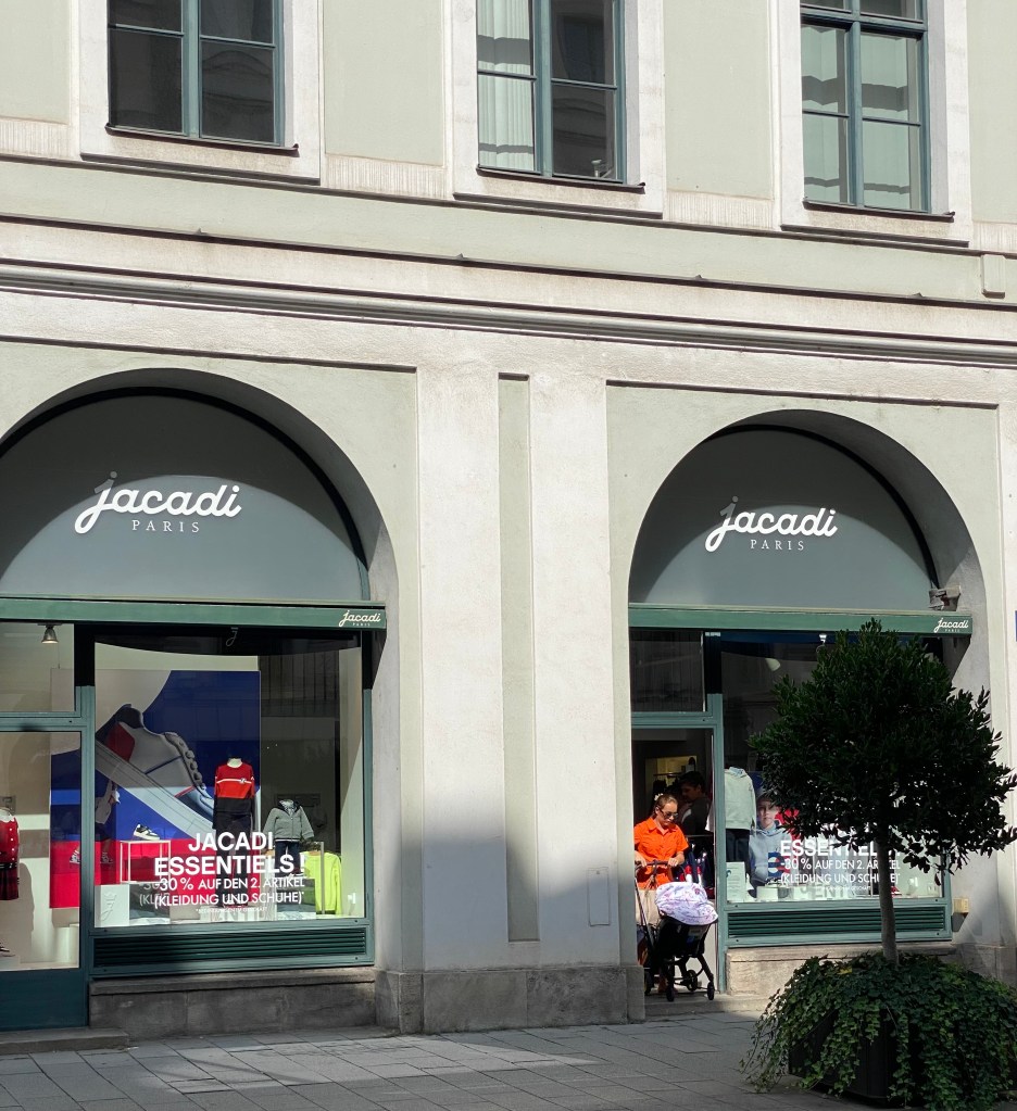 And of course the stylish young münchnerin (females from Munich) who are mothers, often spotted with their kinder in tow (and this one also has her mother or mother-in-law with her to help) can shop in the finest German shops, but the French children’s clothing stores are also represented in Munich: