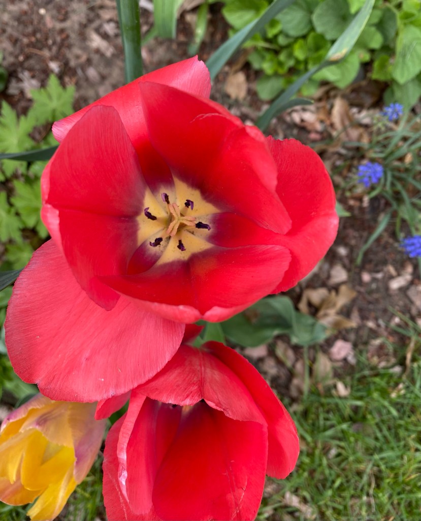 In my garden. I planted these tulips as bulbs last fall. Gardeners are very optimistic people!