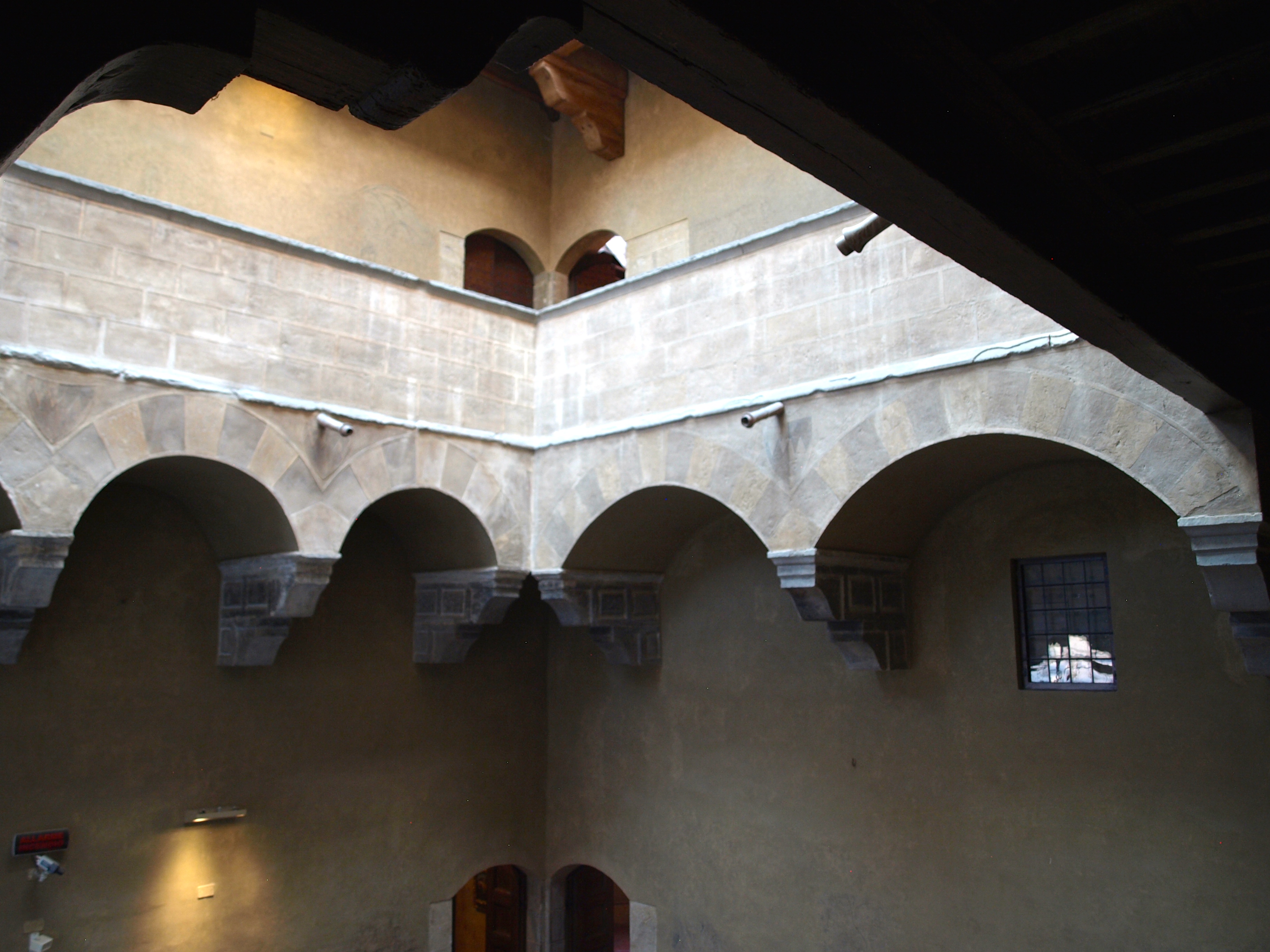 Let’s climb to the first floor and take a look down into the courtyard from above.